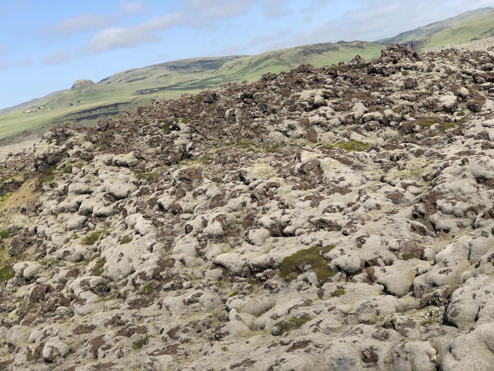 Jedenfalls ist hier ein riesigen Gebiet voll mit kleinen Lava Steinen, die in den Jahren mittlerweile mit Moos bewachsen sind. Ein kleines abgesperrtes Stück kann man zwischen dem harten Gestein auch durchlaufen. Dann gabs dort erst einmal Frühstück. Wie immer Skyr mit Banane und Apfel.