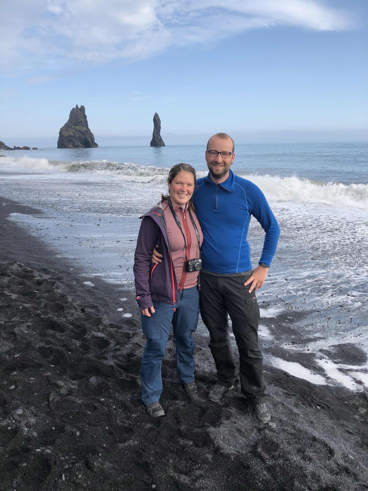 Wir fahren immer noch durch den Geopark und halten an einer früheren Insel, der Hjörleifshöfdi. Durch die schmelzenden Gletscher hebt sich Island empor und die Insel ist nun von schwarzen Sandstrand und vielen Lupinen umringt. Eigentlich wollten wir zu einer keinen Höhle am südlichen Ende spazieren, aber der Weg war so voll mit Lupinen, dass es keinen Spaß gemacht hat dort durchzulaufen. Auf die Insel wollten wir auch nicht, erstens war es bewölkt und die Sicht wäre nicht gut, zweitens unsere Beine...