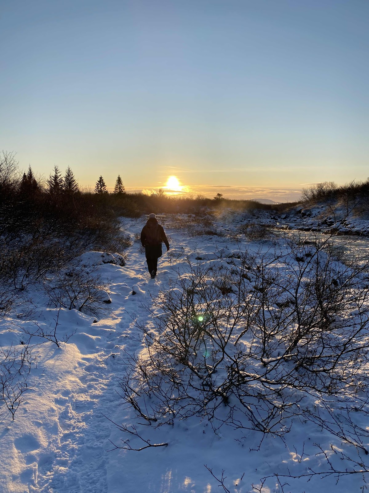 Kurz vor dem Auto frischte der Wind auf und wir waren froh nach knapp 2h wieder zurück zu sein, um uns aufzuwärmen. Denn da der Himmel wolkenlos war, befand sich die Temperatur auf unserem bisherigen Tiefpunkt: -13 Grad!!!