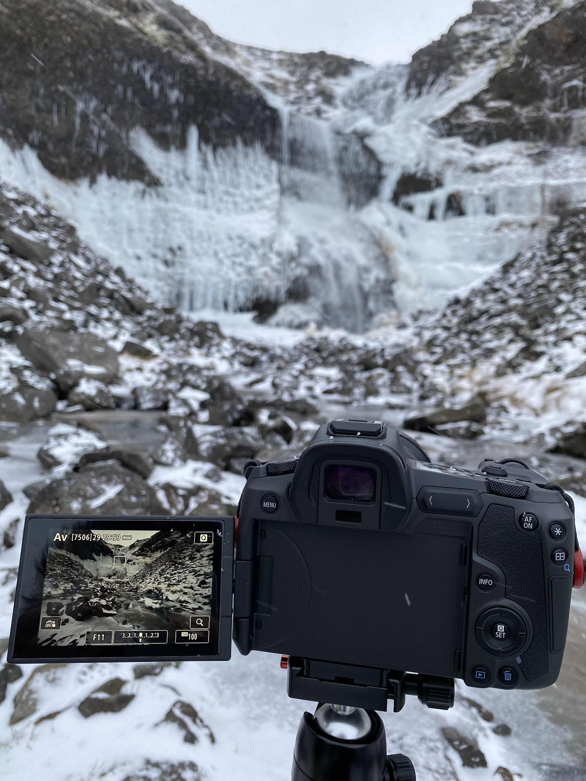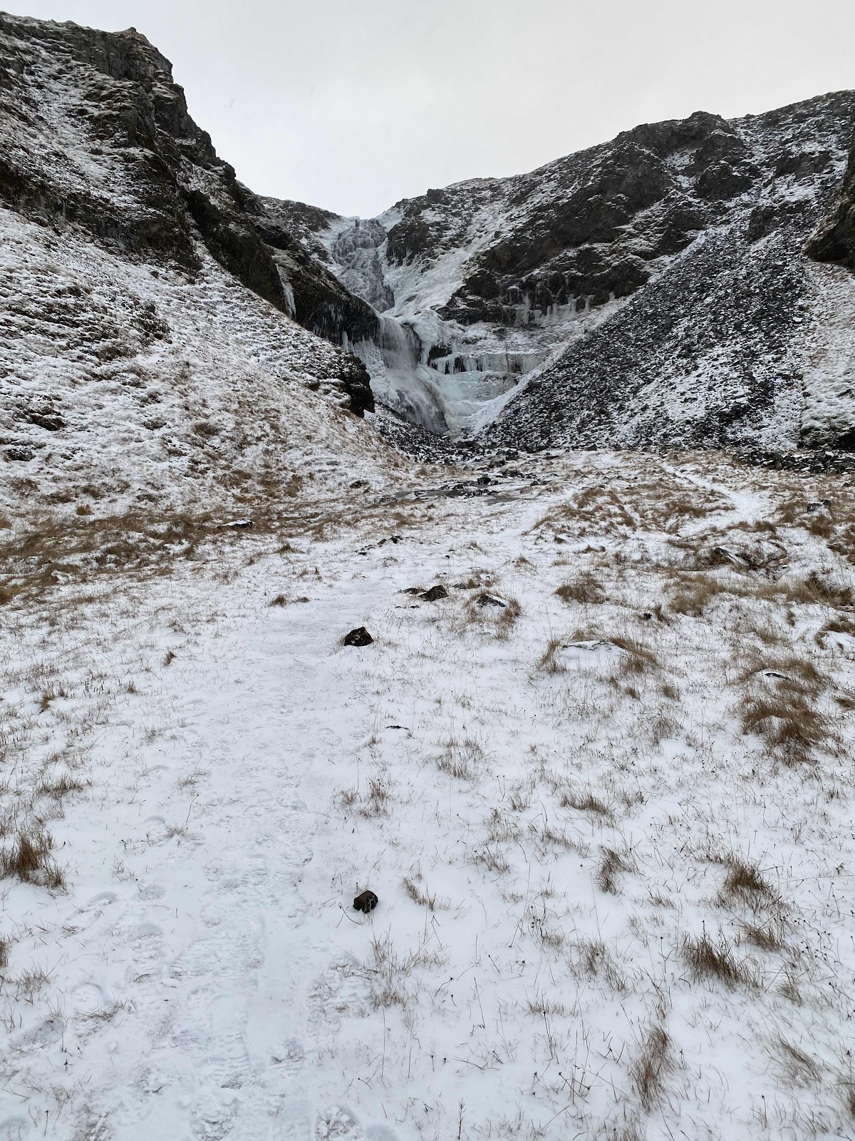 Durch die kalte Nacht mit viel Schnee war auch die Strecke heute deutlich mehr in weiß eingefärbt und die Wasserfälle auch mehr gefroren. Als wir dort fertig waren, sind wir die paar Meter nochmal zur Aussichtsplattform beim Svödufoss gelaufen.