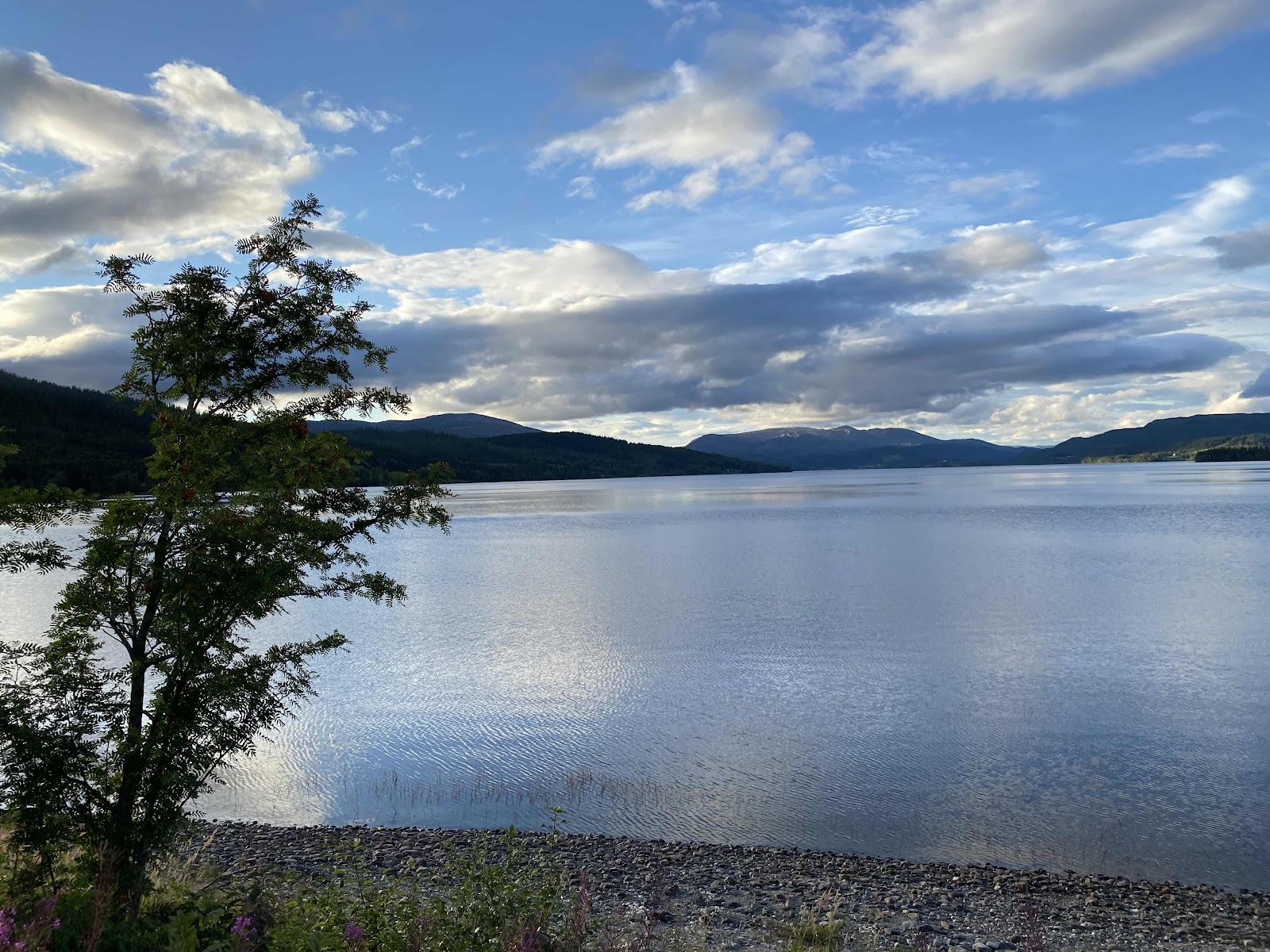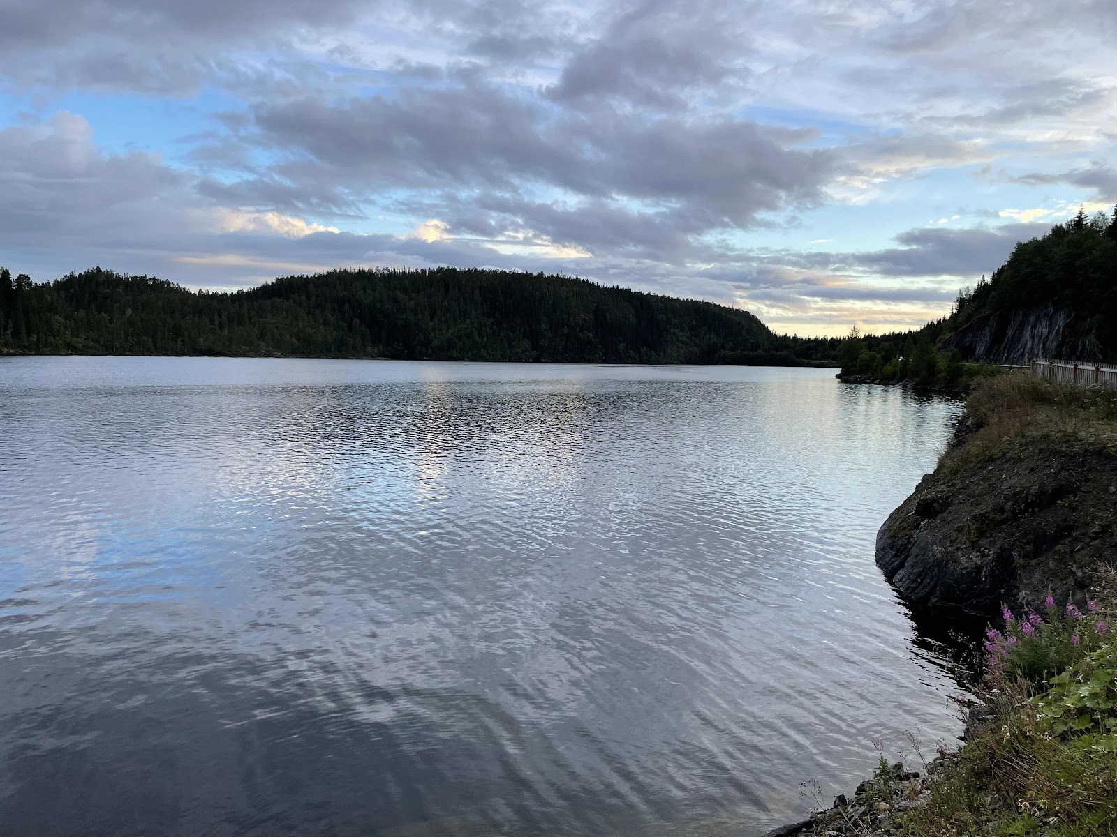 Weiter auf der Scenic Route 17 waren die Wolken am Himmel zum Fotografieren schön. Leider mangelte es an Parkplätzen, bei denen man außer Bäumen auch den schönen Fjord mit den Bergen im Hintergrund sehen konnte. Dann kamen aber doch noch ein paar Gelegenheiten und wir hielten und die Kamera wurde ausgepackt.