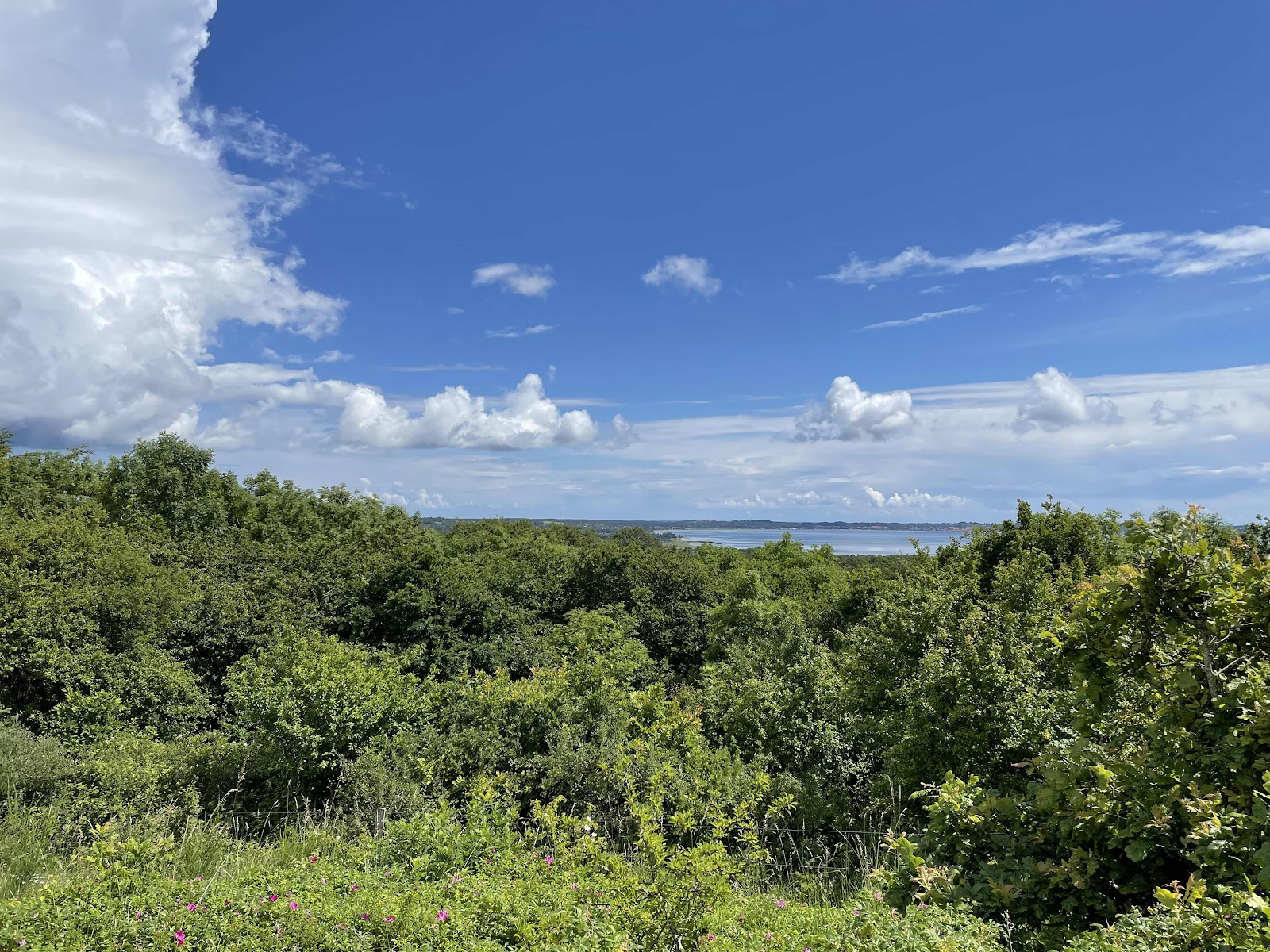 Als die Sonne raus kam sind wir los. Die geplante Route hatte 20km und soll die bergigste sein, die Dänemark zu bieten hat. Entsprechend ging es los bergauf, bergab, bergauf, über die Kuhweide, kurz durch kleine Wäldchen. Schön abwechslungsreich. Leider holte uns nach bereits 3km der Regen wieder ein. Ein kurzer Schauer, einmal alle nass und dann ging’s trocken mit leichten Sonnenstrahlen weiter. Wieder an einer Weide vorbei, und den Kühen zugeschaut wie sie, teilweise trabend, zu ihrer Wasserstelle liefen und sich dort um die besten Plätze drängelten. Als wir nach einer Zeit merkten, wir haben die Abzweigung verpasst und befanden uns auf einer Abkürzung zurück zum Auto, hielten wir es dennoch für eine gute Idee. So waren wir zur Öffnungszeit wieder zurück am Café von gestern für eine Portion Softeis.