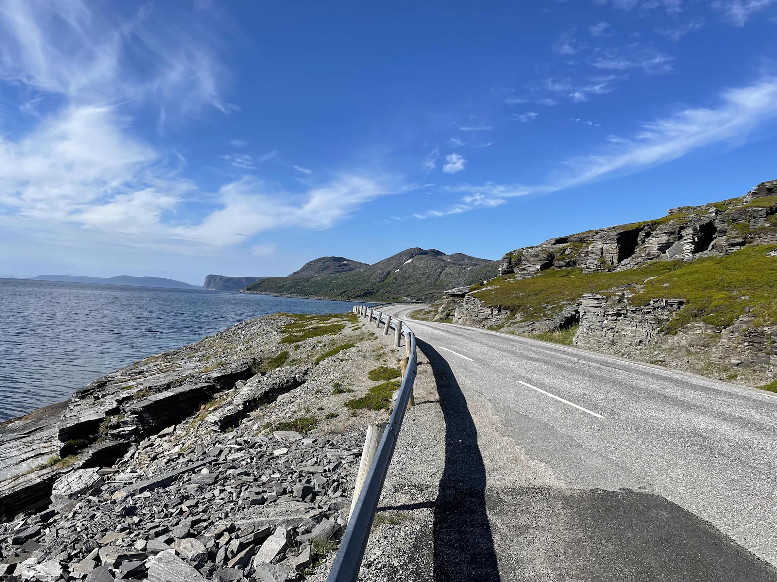 Gestärkt ging es weiter, die Natur genießend und Meter machend. Kurz nach Alta gab es einen erneuten Stopp die Aussicht genossen und weiter. Irgendwann ist uns aufgefallen wir haben ähnliche Stopps mit einem Bus voller deutscher Rentner, die die Parkplätze entsprechend besiedelten. Anscheinend waren unsere Stopps nicht unbegründet. Abgebogen sind wir dann nach Langfjorsbotn zum Oksfjorsjoekelen - Gletscher.