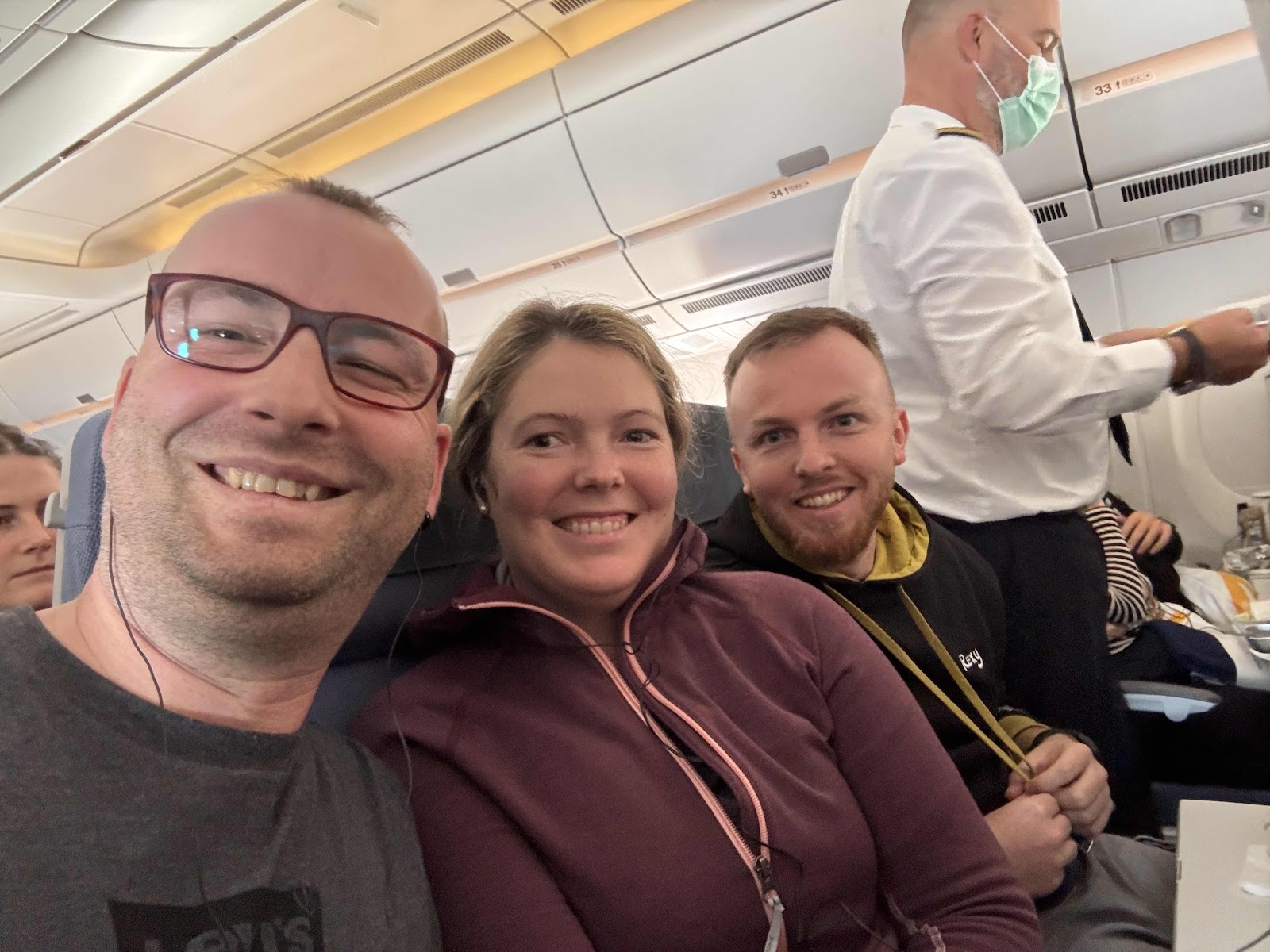 Gegen 7 Uhr sind wir losgefahren Richtung München Flughafen. Verkehr war keiner und nur kurze Phasen von stockendem Verkehr. Kurz vor 9 Uhr haben wir uns mit Robin getroffen und sind dann mit dem Shuttle Bus zum Terminal. Unsere Reise treten wir zu dritt an. Wir waren früh genug dran und sind durch alle Kontrollen fix durchgekommen. Pünktlich sind wir dann in den Flieger und losgeflogen - geplante Flugzeit 7:55h.