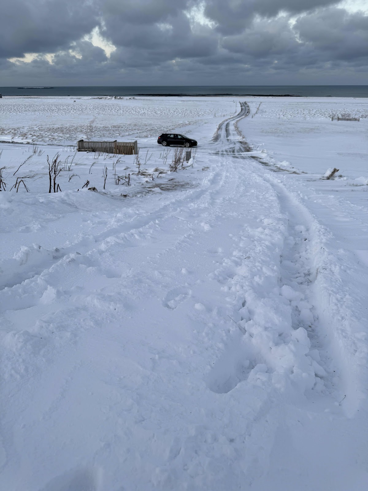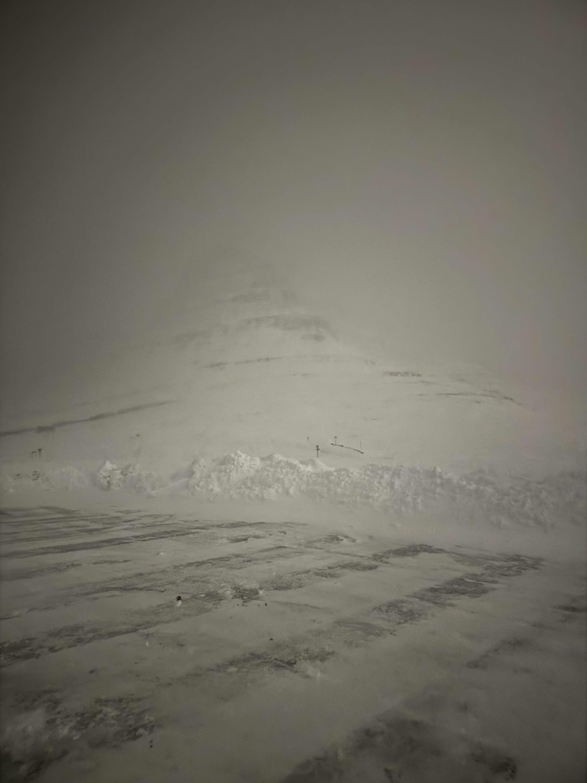 Leider hoffnungslos. Es war mega windig auf den Straßen, teilweise wenig Sicht und komplett bedeckt. Am Ende sind wir dennoch bis zum Spot gefahren, allerdings war die Situation dort nicht besser. Also retour und ab ins Bett. Heute sind wir auch den Berg mit dem Auto hochgekommen. Bedeutet, dass wir morgen früh easy einladen können.