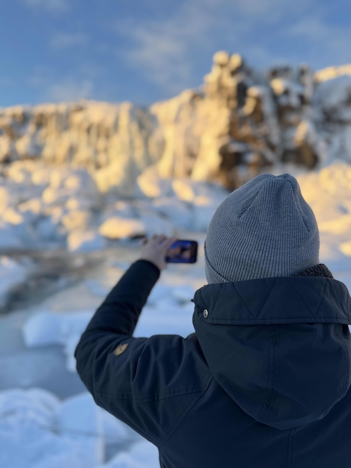 Nähe Reykjavik haben wir einen kurzen Tank- und Shoppingstopp eingelegt bevor es dann weiter zum Parkplatz Nähe Öxararfoss ging. Vom Parkplatz aus waren es nur wenige hundert Meter bis zum Spot. Wir hatten Glück, denn die Sonne war gerade mal nicht hinter den Wolken verschwunden und wir haben schönes Licht gehabt für ein paar Fotos. Als dann so langsam die Sonne wieder hinter den Wolken verschwand und wir kalte Füße hatten, fuhren wir zum Kaffee in der Nähe. Zwei Muffins und ein Cappuccino später waren die Füße wieder etwas wärmer.