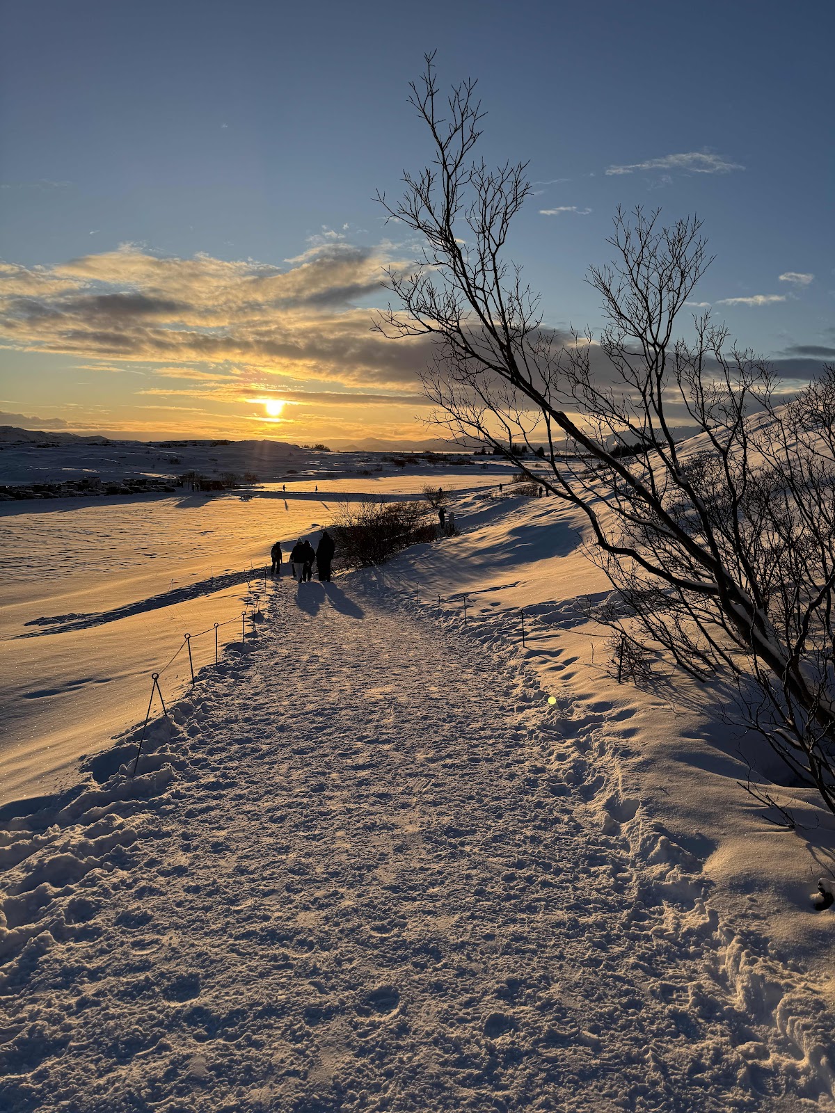 Christian hatte aber immer mehr Rückenschmerzen während der Fahrt. Irgendwas hatte sich wohl eingeklemmt. Da es dann irgendwann gar nicht mehr ging, haben wir Fahrerwechsel gemacht und sind zu einer Apotheke gefahren, um ein paar Ibus zu besorgen. In Selfoss haben wir eine Apotheke gefunden und welche bekommen. Moni ist dann den Rest der Strecke gefahren zur Unterkunft - der Rauðuskriður Farm. Langsam ist die Sonne wieder am Horizont verschwunden, aber die Straßen waren gut befahrbar. Lediglich der Wind war wieder stärker. Die Straße zur Farm war teils wieder mit viel Schnee Versehen und wir merkten wie unser Auto zu kämpfen hatte.