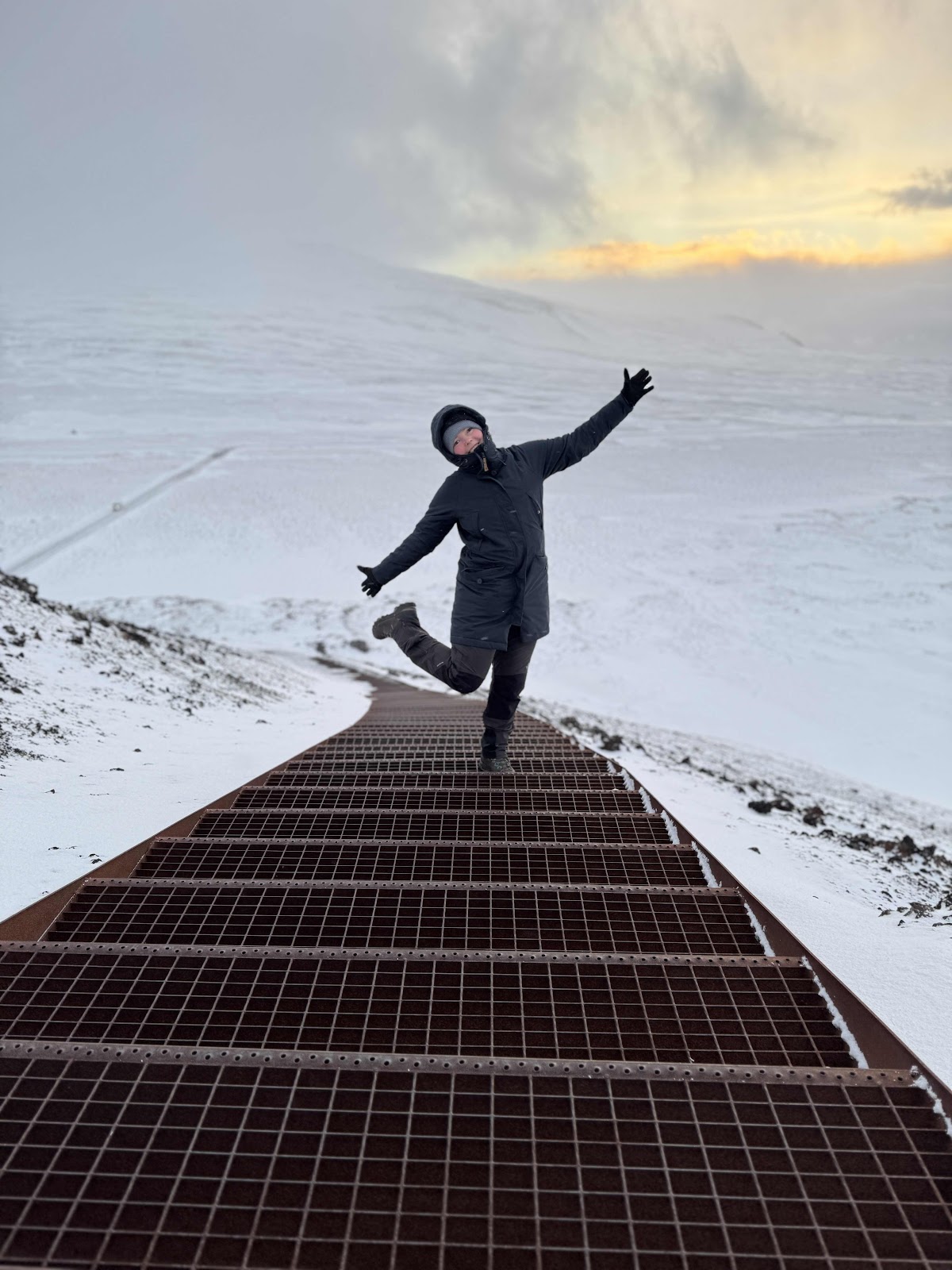 In unserem kleinen Zimmer mit Einbauküche haben wir dann unseren Skyr mit Bananen gefrühstückt. Hier gibt’s den Original isländischen Skyr der um weiten besser schmeckt als daheim - und selbst Christian langanhaltend satt macht! Gegen halb 11 Uhr ging es los, es wurde auch so langsam hell, und wir begannen das Auto vom Schnee zu befreien. Zum Glück hauptsächlich nur Puderschnee.