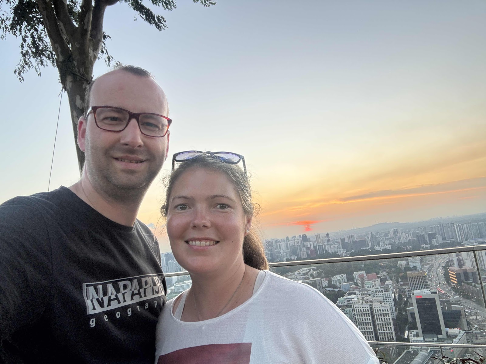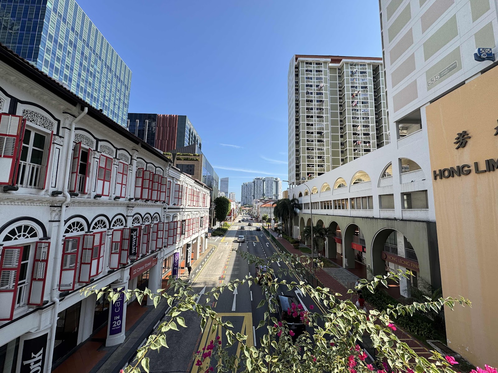 Ein Film, nochmal essen und etwas Augenschonung später, waren wir dann in Singapur. Einreise ging super fix, Gepäck war auf dem Band und während Moni es entgegennahm, konfigurierte Christian die Grab App - Eine lokale Taxi App-Alternative wie Uber. Wenige Meter hinter dem Gepäckband war ein Ausgang, an dem uns wenige Minuten später unser Taxi eingesammelt hat. Das lief mal richtig flott und reibungslos. Ebenso die anschließende Fahrt zu unserer Unterkunft in der Harborfront. An der Rezeption haben wir dann feststellen dürfen, dass wir noch viel zu früh für den Check-in dran waren. Es war Mittag und Check-in ist erst ab 15 Uhr möglich. Da warten keine Option war, haben wir uns kurz frisch gemacht, etwas umgepackt und sind los Richtung Bernis Wohnung.