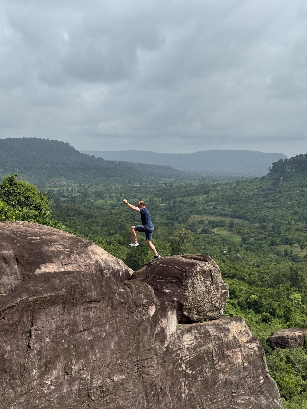 Nachdem wir satt waren blieben die Essensreste da, die wollte ein anderer Guide für seinen Hund mitnehmen. Wir liefen den Weg wieder hoch zurück zum Auto. Nach dem Essen doch anstrengender als gedacht. Angekommen gab es aber erst mal kühle Tücher wieder. Kaum im Auto fing es an zu regnen - kurz nur aber Glück gehabt. Auf dem Weg vom Berg hinab hatten wir noch mal wieder einen schönen Ausblick auf die Landschaft, auch wenn die Regen Wolken dunkel und tief hingen.