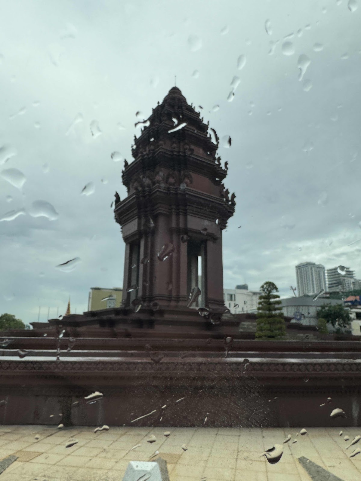Danach noch zum Hard Rock Shop und Christians obligatorische Einkäufe getätigt. Das nächste Grab brachte uns dann wenig später zum Hotel und wir konnten einchecken. Wir haben uns den Pool direkt angesehen. Also umgezogen und ab in den 7. Stock zum Infinty Pool und einer kleinen Aussicht auf Phnom Penh. Ein großer Tempel war in der Nähe, ein quirliger Kreisverkehr. Jedoch blieben wir nur ca 30 Minuten, denn dann wollte Christian zur Bar - es war Happy Hour - 2 Cocktails bestellen, den Dritten for free bekommen.