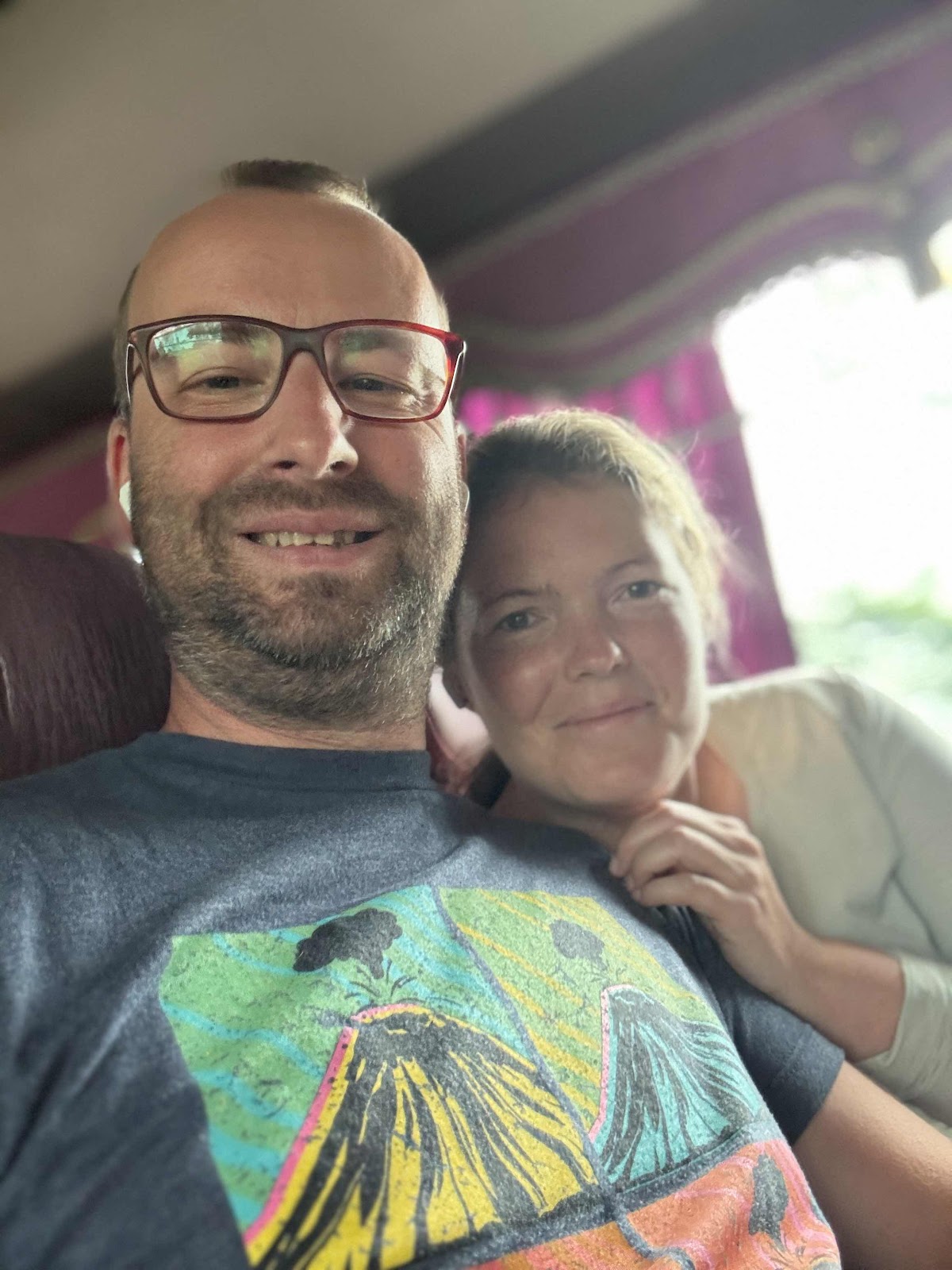 Die Fahrt zog sich, auch wegen dem mangelnden Boardentertainment. Alle ca. 1,5 Stunden gab es eine Pause. Während wir uns die Zeit mit Podcasts rumgetrieben haben, hat Christian an den Bildern gewerkelt. Die Halbzeit haben wir dann im Bus verbracht, während alle anderen Richtung Toilette oder Kleinigkeiten kaufen waren. Ohne Klima war das im Bus aber echt nicht angenehm 20 Minuten zu warten. Dann ging die Fahrt weiter und es wurde etwas Augenschonung betrieben, denn so viel gab es nicht zu sehen. Viel Grün, da es Regenzeit ist, Reisfelder mit Kühen und manchmal badenden Büffeln und immer wieder keine Dörfer, die alle auch so aussahen wie Teile von Siem Reap - an den Straßen kleine Stände, die alles mögliche verkaufen, frisch gegrillt, kühle Getränke, getrocknetes Obst etc.