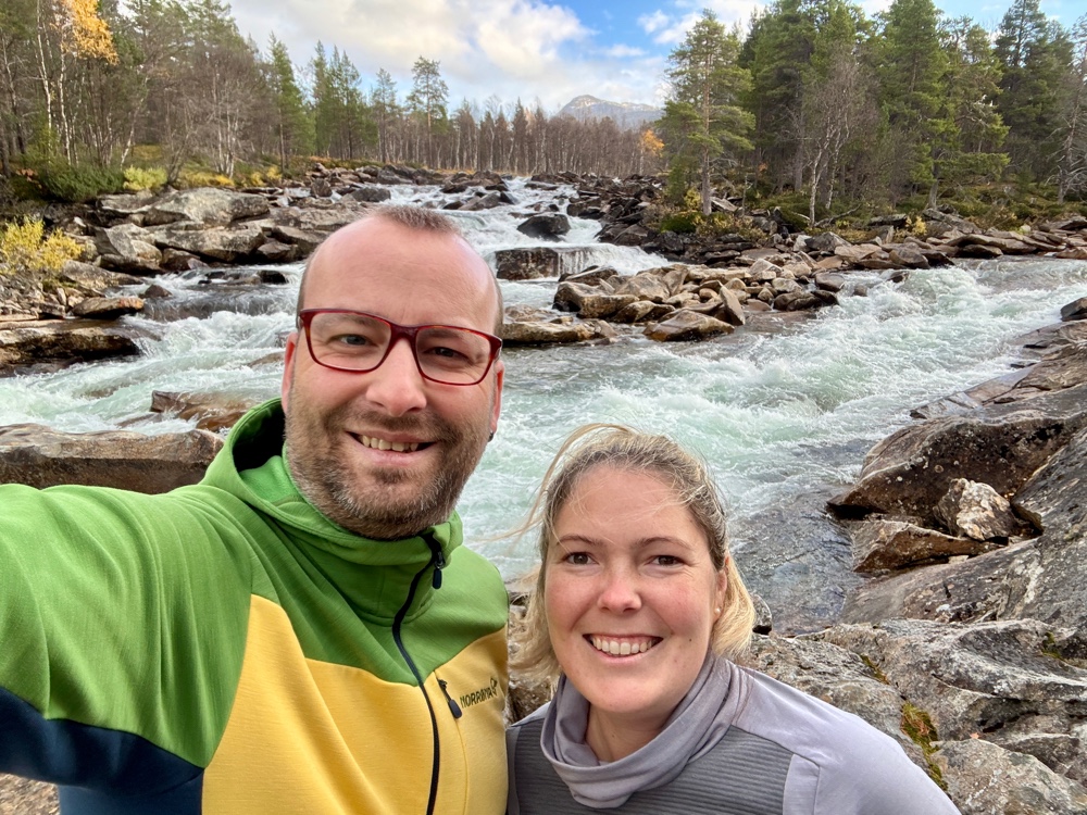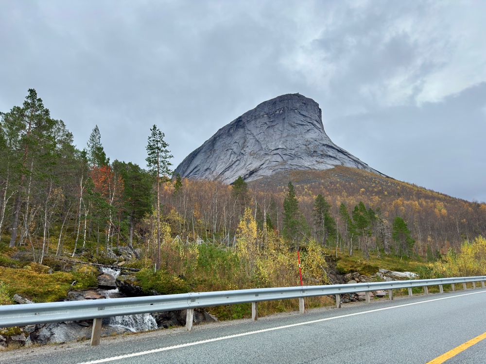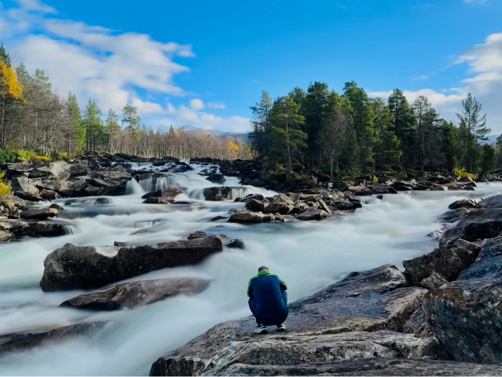 Nach längerer Zeit hielten wir an einem Spot, den wir vor ein paar Jahren schon einmal gefunden hatten und liefen zum Fluss. Es war ziemlich kalt, 6,5 Grad. Regen und Wolken wechselten sich ab, kurzzeitig kam auch mal die Sonne raus. Am Arctic Circle Center sind wir vorbei, dieses liegt auf knapp 700 Höhenmeter- nun ging es wieder bergab.