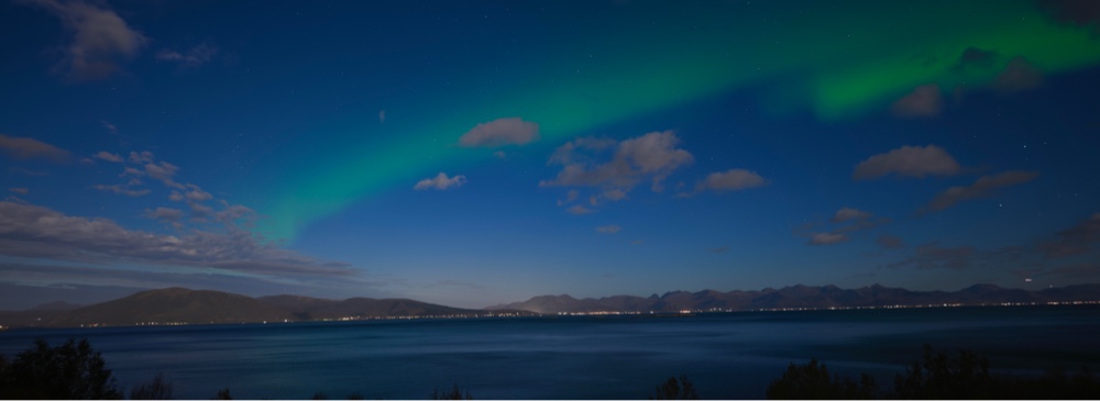 Ab auf die Couch. Doch so langsam klarte der Himmel auf. Nach dem Abendessen aber war es wieder teils zugezogen. Die Aurora App aber behauptete etwas nördlicher von uns hört das Wolkenfeld auf. Also ab ins Auto und los. Der Himmel wurde auch immer klarer aber der Vollmond leuchtete auch wirklich stark. Nach Guten 40 Minuten hielten wir auf einen Parkplatz an dem auch schon ein Reisebus stand, und da konnten wir sie leicht sehen. Wir sind dann noch ein paar Kilometer weiter die Küste entlang in der Hoffnung noch einen besseren Platz zu finden. Dann aber doch zurück und an einem kleinen Strandabschnitt noch die Reste gesehen. Leider etwas zu spät. Die Wolken zogen auf - genau dort wo die Nordlichter waren. Toll!