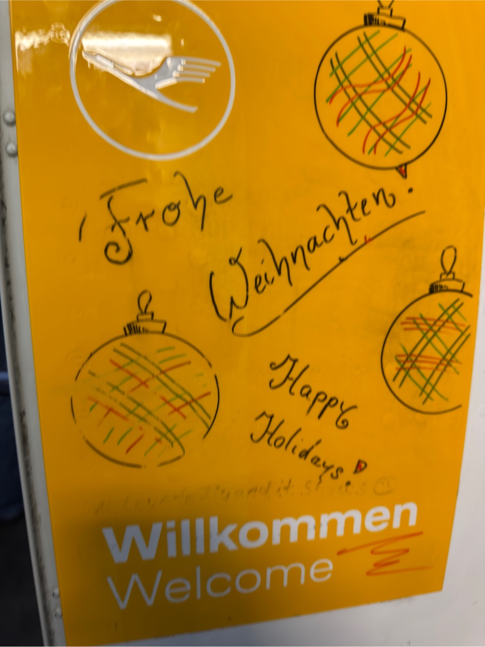 Kurz vor 6 Uhr klingelte der Wecker, und nach den kurzen Weihnachtsnächten, war es ein verschlafenes aufstehen. Aber hilft ja nichts. Da schon fast alles gepackt war, ging es pünktlich wie geplant um halb 7 Richtung Flughafen los. Nach nur 1,5 Stunden Fahrt waren wir sicher im Parkhaus angekommen und wenig später an der Gepäckabgabe sowie der Sicherheitskontrolle. Hier war mehr Chaos - die Security an der wir anstanden hat vor uns dicht gemacht und wir mussten uns woanders anstellen. Dann hatte Christian seine „alte“ Kamera Moni ins Handgepäck gegeben, natürlich durfte dann Moni zur Sprengstoff Kontrolle. Die „neue“ Kamera kam ohne durch.